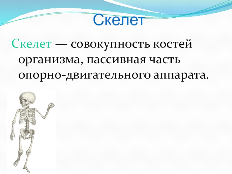 Скелет — совокупность костей организма, пассивная часть опорно-двигательного аппарата.