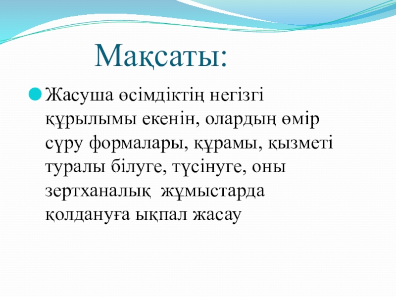 өмір сүру формалары, құрамы, қызметі туралы білуге, түсінуге, оны зертханалық жұмыстарда қолдануға ықпал жасау