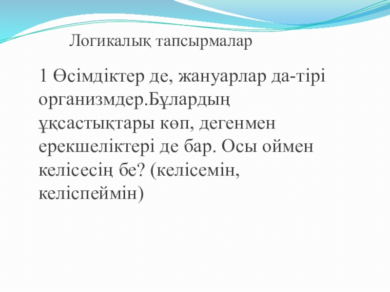 де, жануарлар да-тірі организмдер.Бұлардың ұқсастықтары көп, дегенмен ерекшеліктері де бар. Осы оймен келісесің бе? (келісемін,келіспеймін)