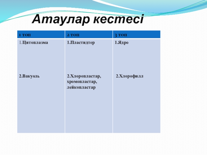 Жасушалардың тіршілік әрекеттері (№ 3 зертханалық жұмыс, кестені