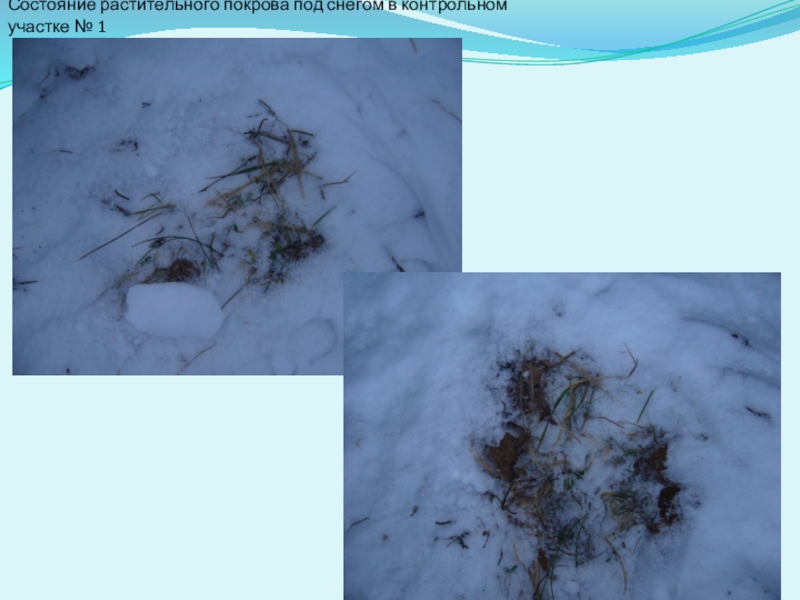 Слайд 10Состояние растительного покрова под снегом в контрольном участке № 1