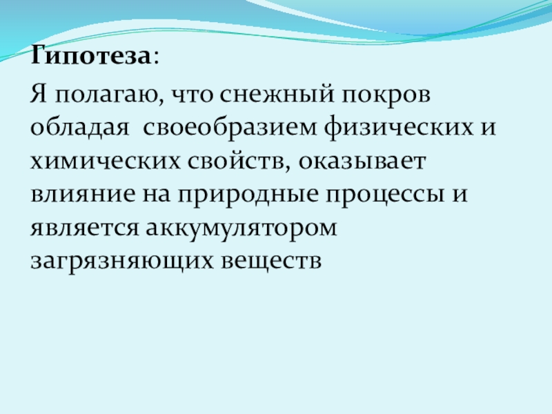 Слайд 2Цель : Определить влияние снежного покрова на природные процессы.