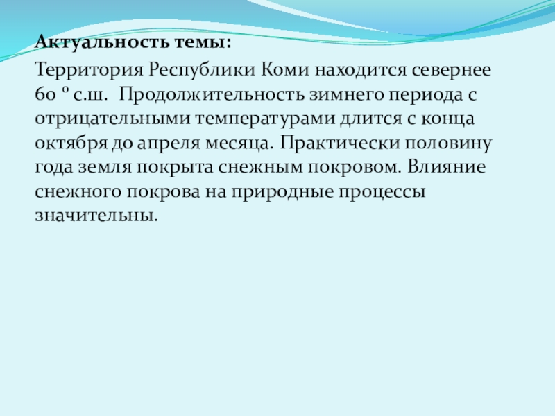 Территория Республики Коми находится севернее 60 0 с.ш. Продолжительность