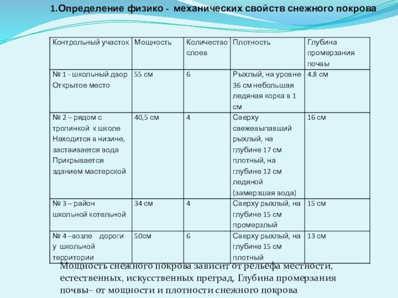Слайд 61.Определение физико - механических свойств снежного покрова