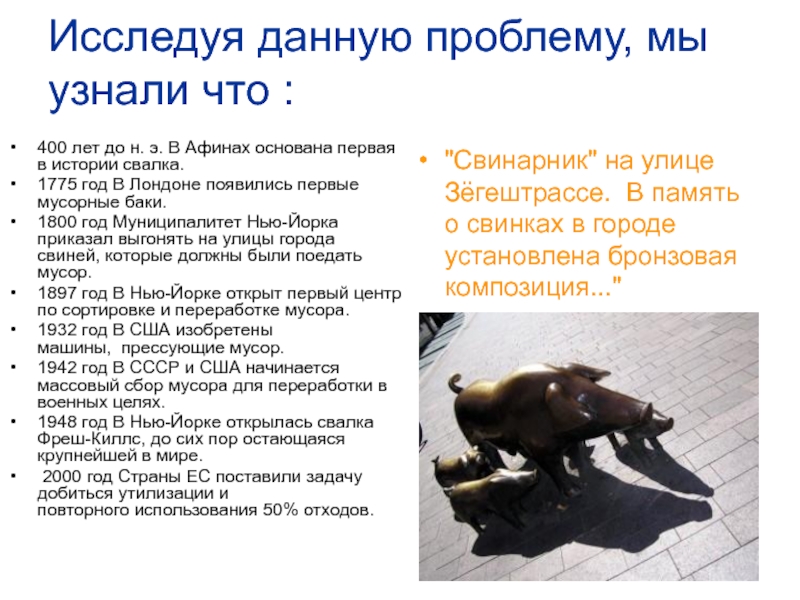 1800 год Муниципалитет Нью-Йорка приказал выгонять на улицы города свиней, которые должны были поедать мусор.