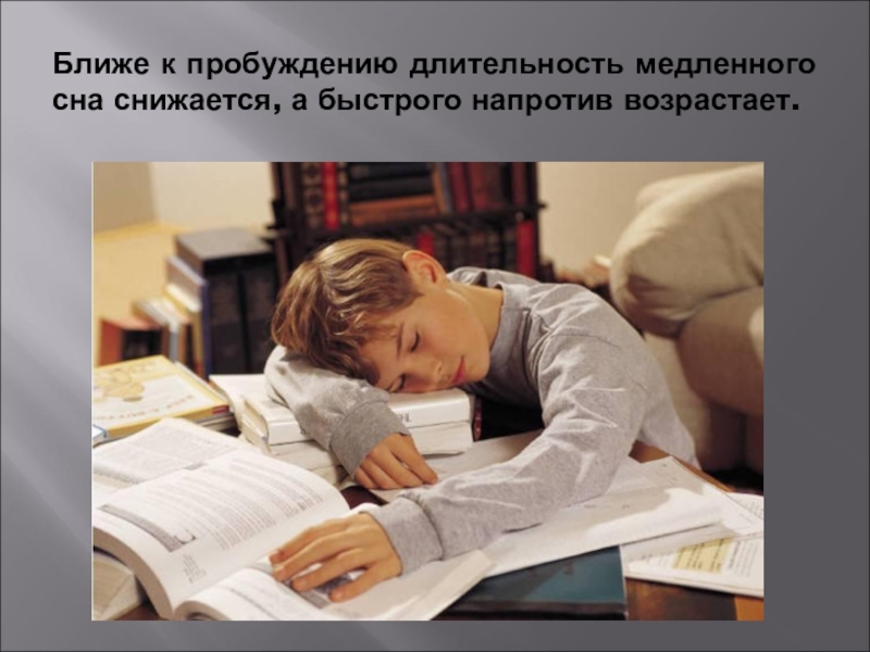 Во время медленного сна в организме человека понижается температура, замедляются дыхание и сердечный ритм, расслабляются мышцы, понижается обмен веществ, глазные яблоки под веками совершают медленные, плавные движения. Во время медленного сна происходит регенерация тканей, повышается выработка гормона роста.
