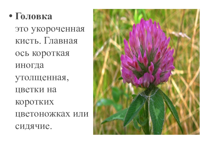 Слайд 8Головка  это укороченная кисть. Главная ось короткая иногда утолщенная, цветки на коротких