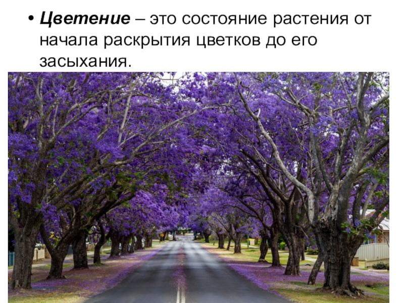 Слайд 13Цветение – это состояние растения от начала раскрытия цветков до его засыхания.