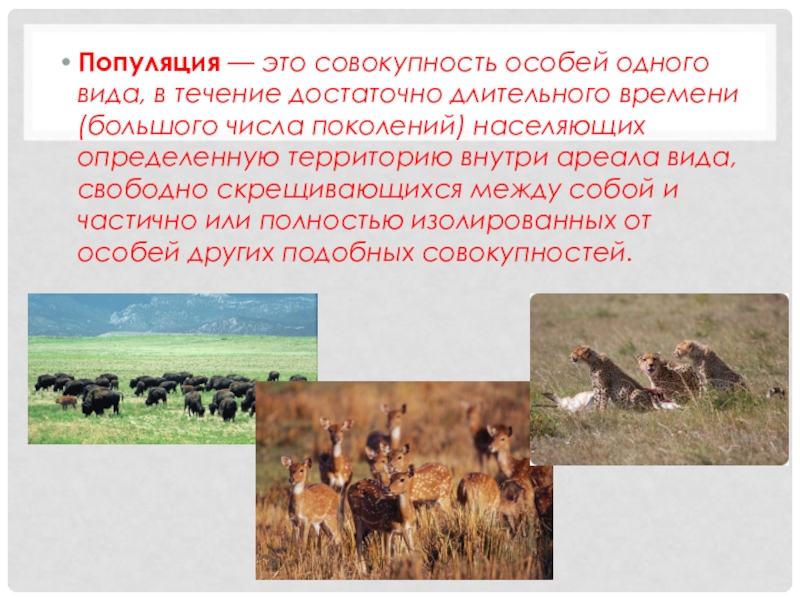 Слайд 9Популяция — это совокупность особей одного вида, в течение достаточно длительного времени (большого