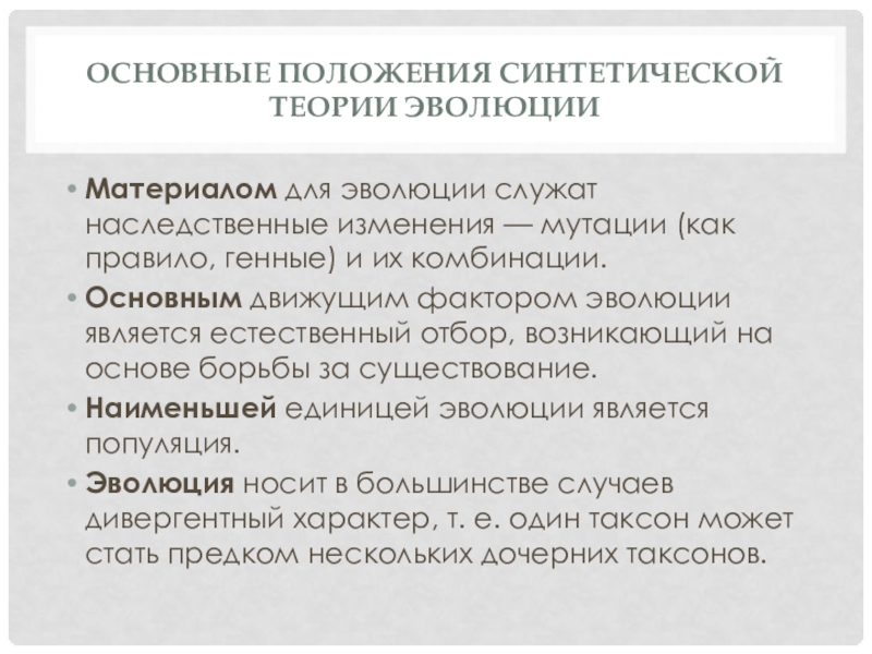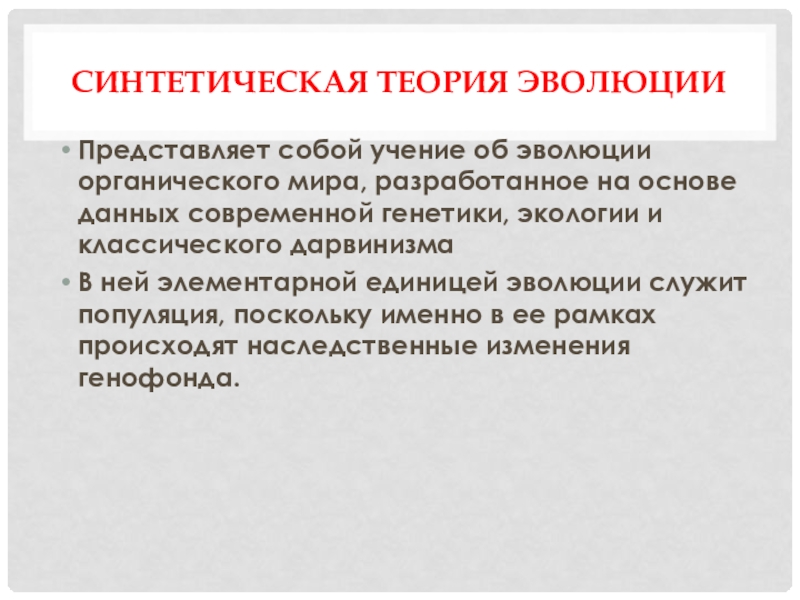 Слайд 10Синтетическая теория эволюции
