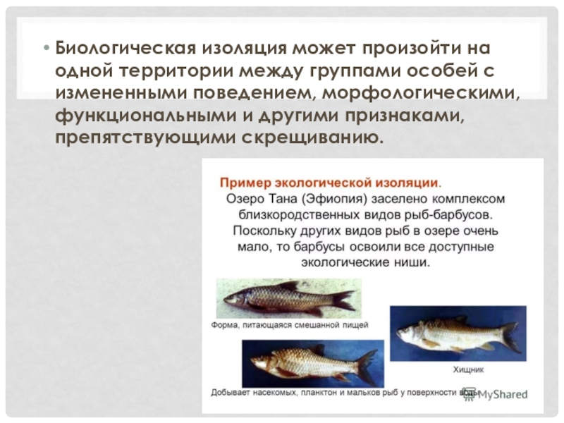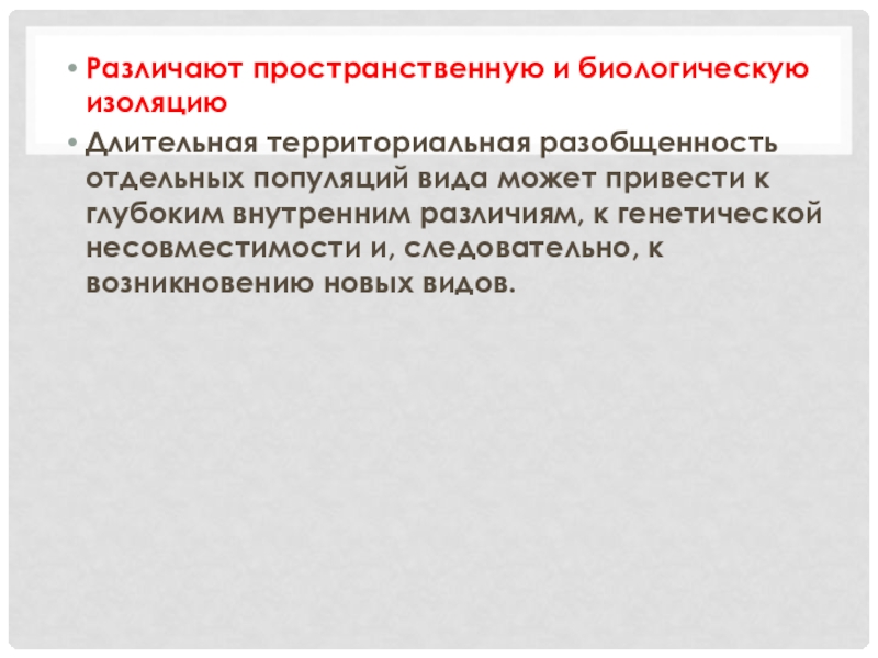 Слайд 25Различают пространственную и биологическую изоляцию
