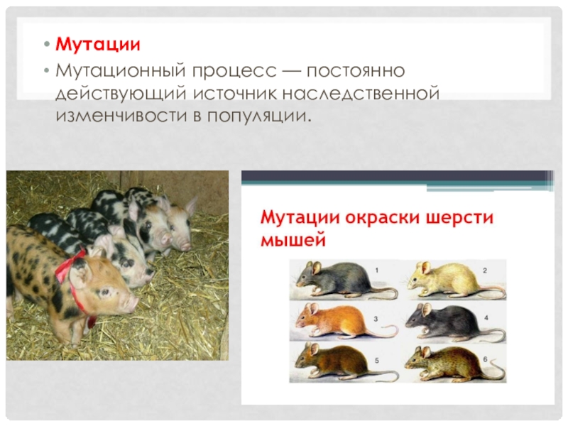 Мутационный процесс — постоянно действующий источник наследственной изменчивости в популяции.