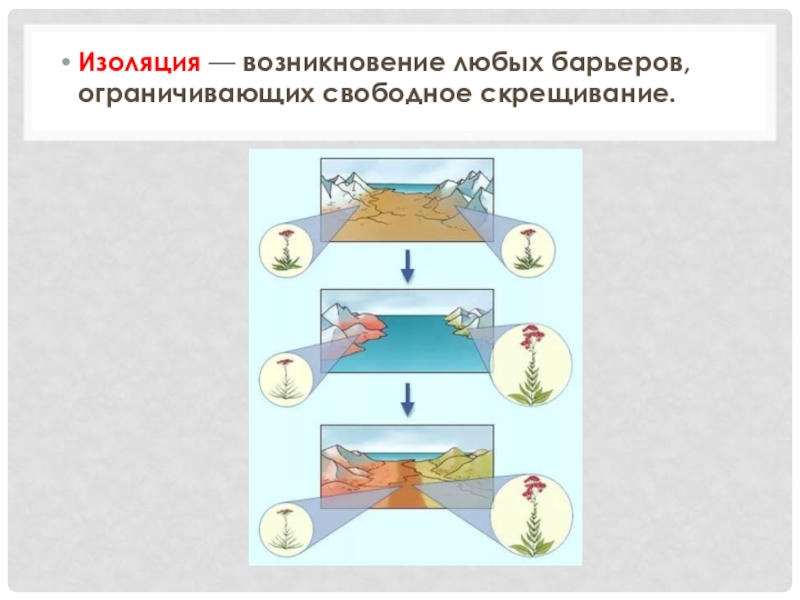 Слайд 24Изоляция — возникновение любых барьеров, ограничивающих свободное скрещивание.