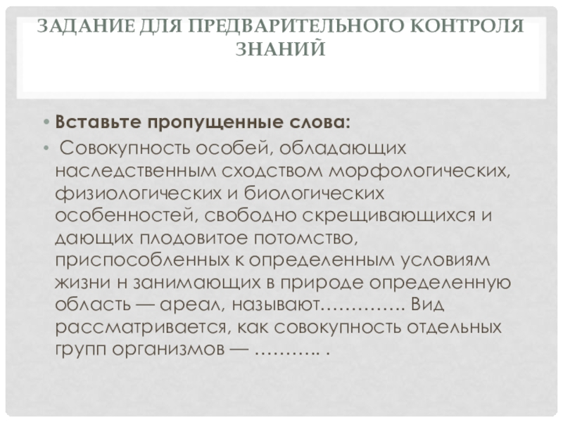 Слайд 31Задание для предварительного контроля знаний