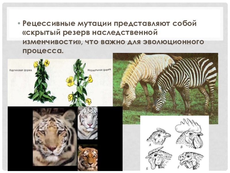 Слайд 18Рецессивные мутации представляют собой «скрытый резерв наследственной изменчивости», что важно для