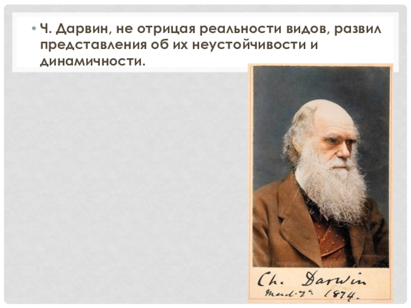 Слайд 6Ч. Дарвин, не отрицая реальности видов, развил представления об их неустойчивости