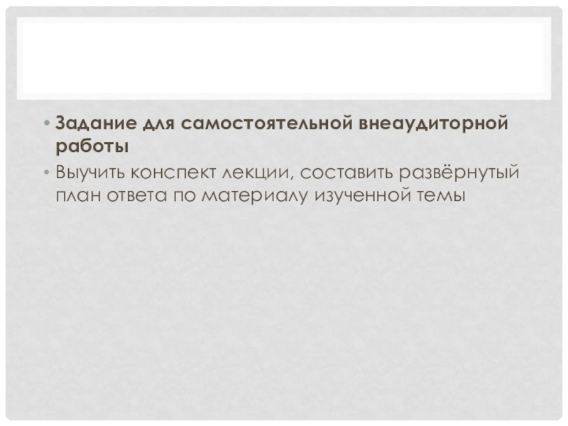 Слайд 34Задание для самостоятельной внеаудиторной работы