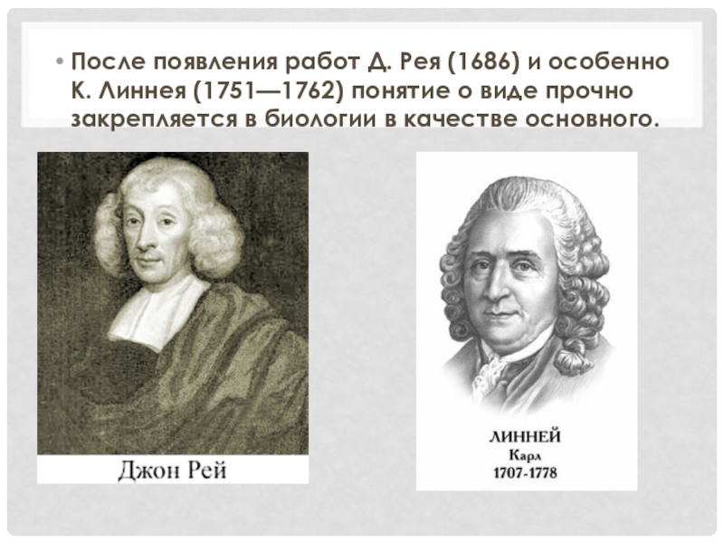 Слайд 3После появления работ Д. Рея (1686) и особенно К. Линнея (1751—1762)