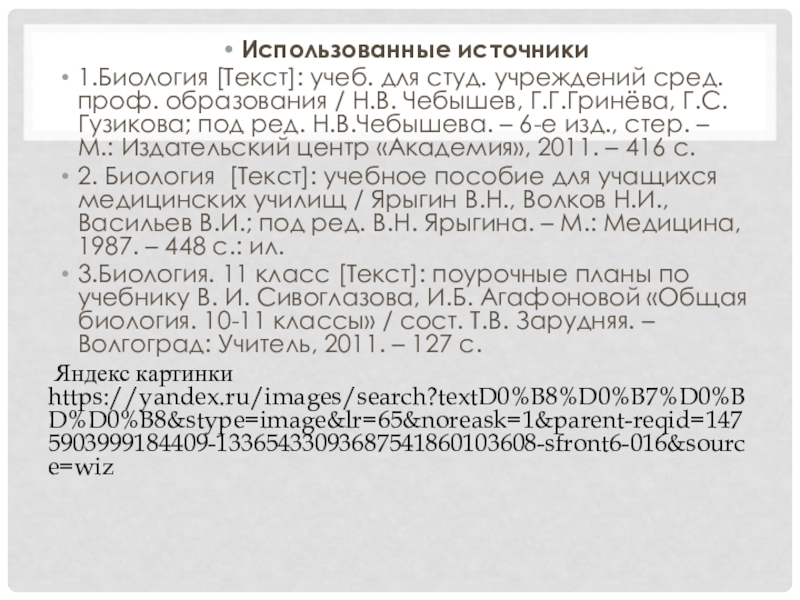 1.Биология [Текст]: учеб. для студ. учреждений сред. проф. образования /