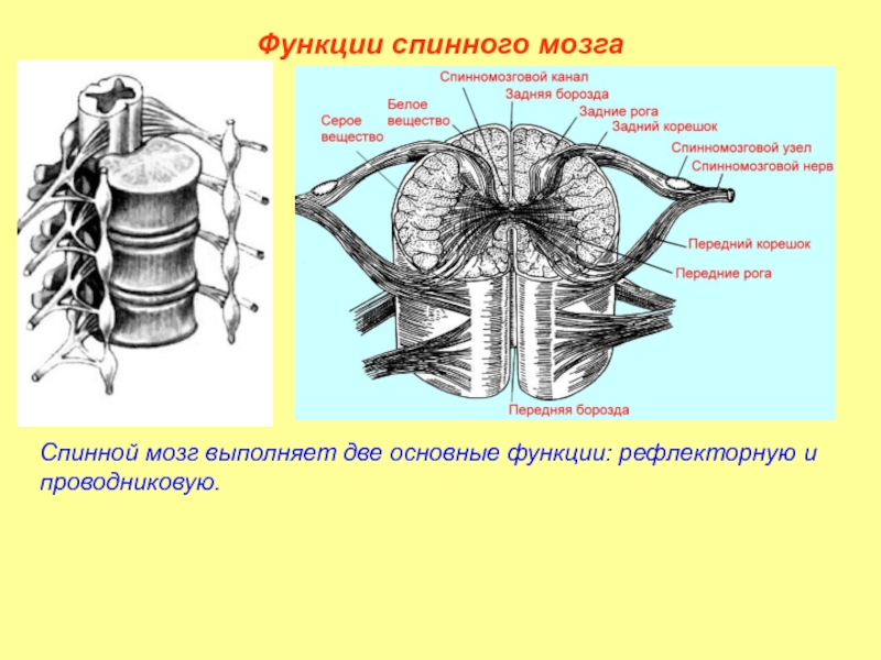 Проводниковая – проведение импульсов по восходящим путям к головному мозгу, по нисходящим – от головного мозга ко всем органам.