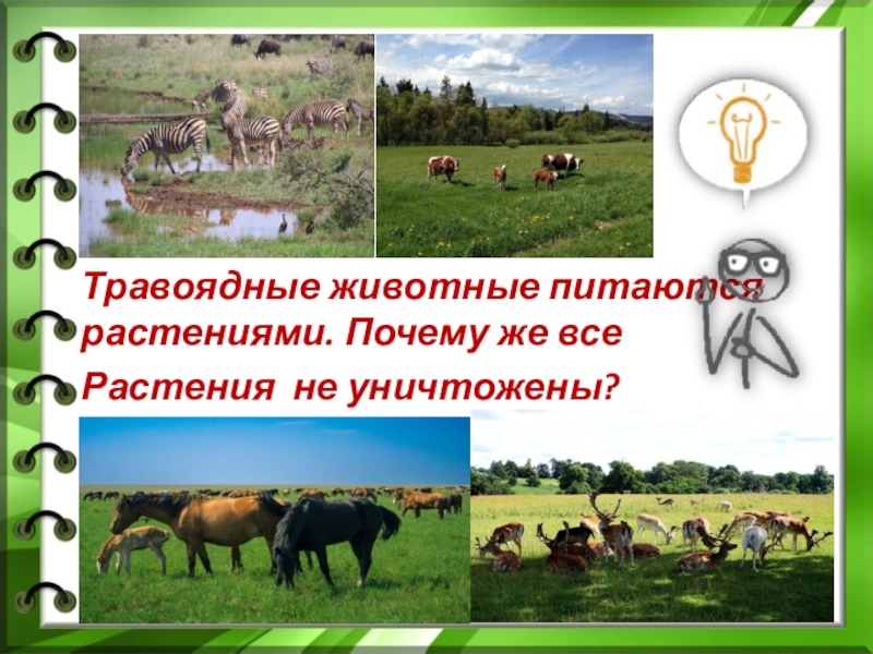 Слайд 2Травоядные животные питаются растениями. Почему же все