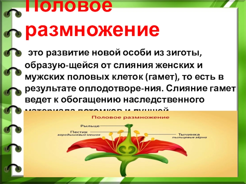 Половое размножение   это развитие новой особи из зиготы, образую-щейся от
