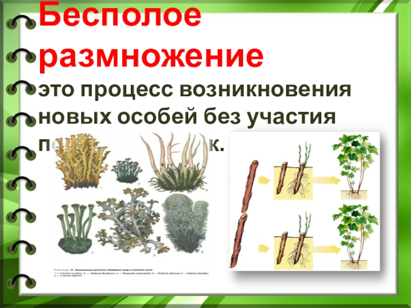 Слайд 6 Бесполое размножение это процесс возникновения новых особей без участия половых клеток.