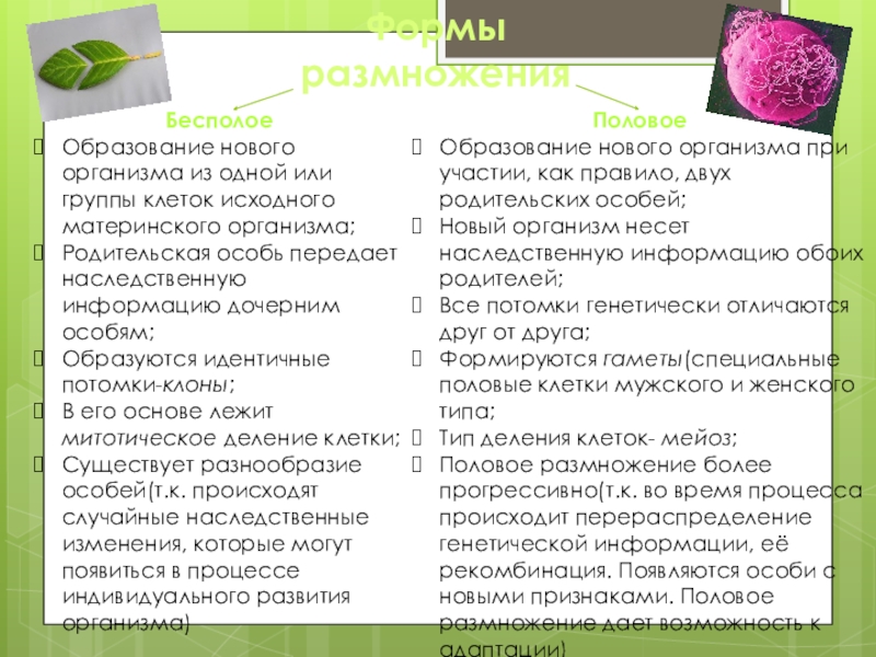 Половое размножение более прогрессивно(т.к. во время процесса происходит перераспределение генетической информации, её рекомбинация. Появляются особи с новыми признаками. Половое размножение дает возможность к адаптации)