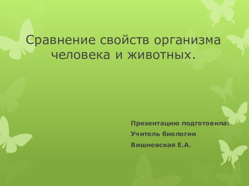 Сравнение свойств организма человека и животных. Презентацию подготовила:Учитель биологииВишневская Е.А.