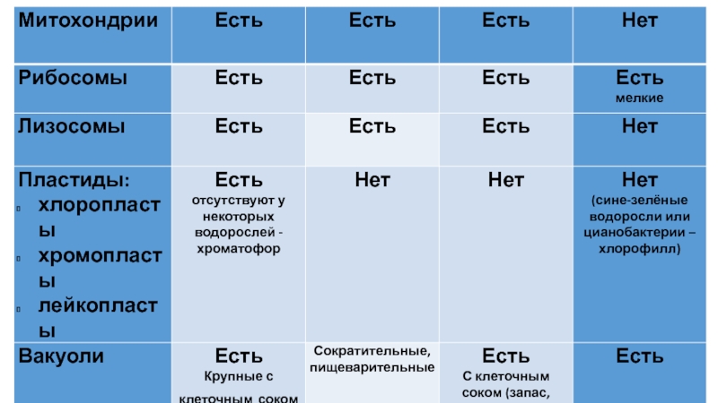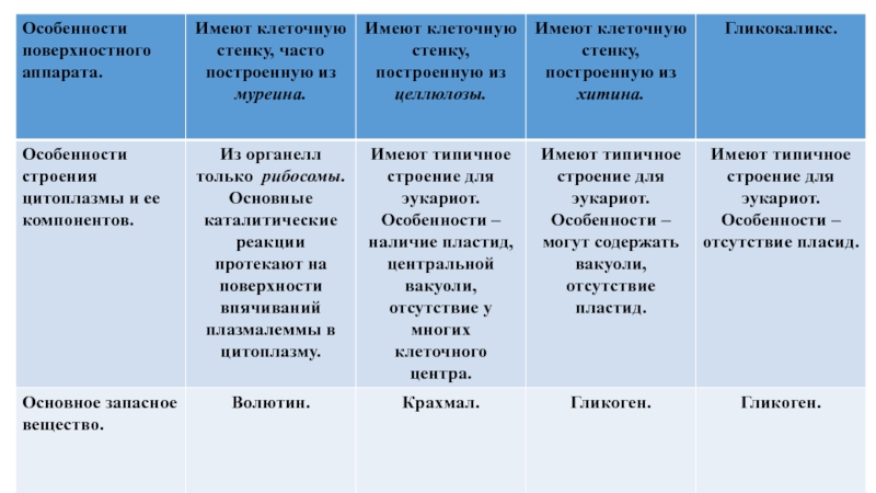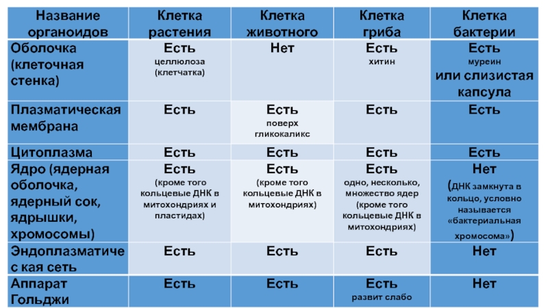 Презентация, доклад по биологии на тему Сравнительная хар-ка клеток