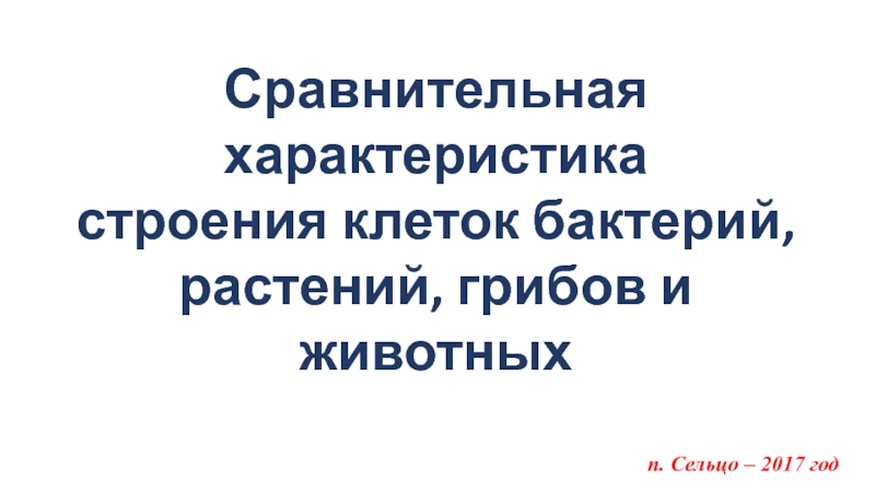 Сравнительная характеристикастроения клеток бактерий, растений, грибов и животныхп. Сельцо – 2017 год
