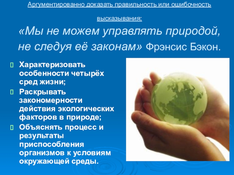 «Мы не можем управлять природой, не следуя её законам» Фрэнсис Бэкон.