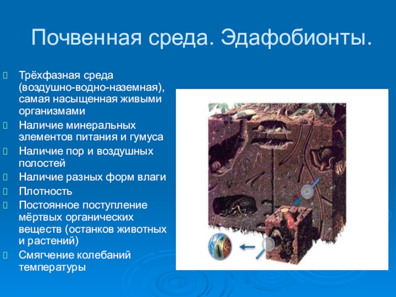 Трёхфазная среда (воздушно-водно-наземная), самая насыщенная живыми организмами