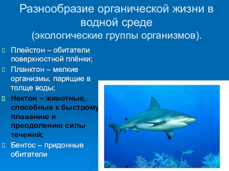 Нектон – животные, способные к быстрому плаванию и преодолению силы течений;