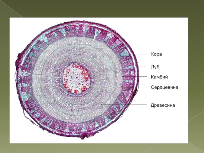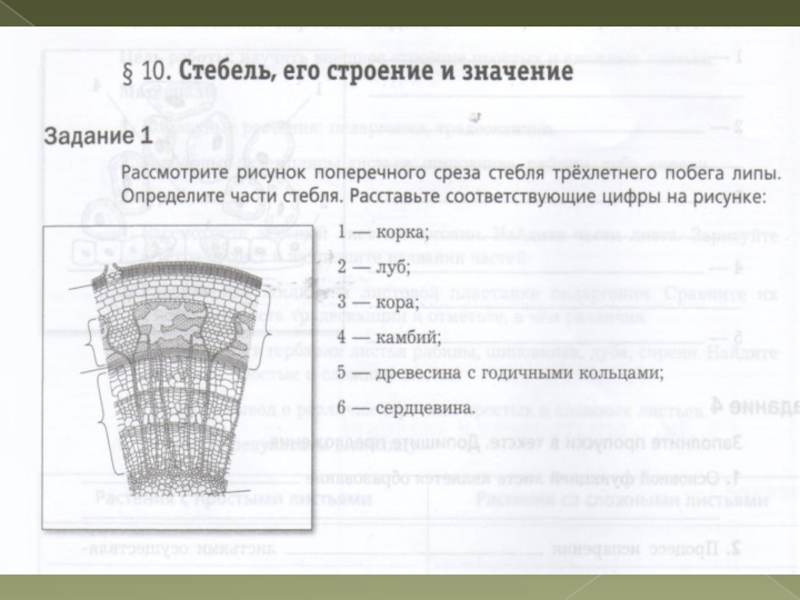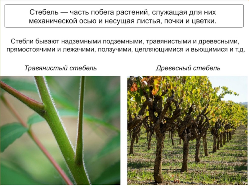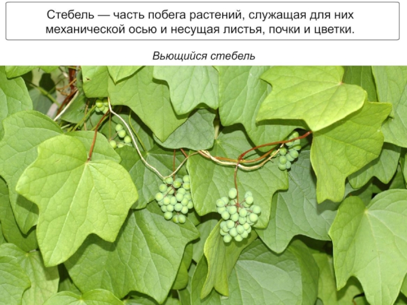 стебель, на верхушке которого находится верхушечная почка. На стебле располагаются листья и почки.