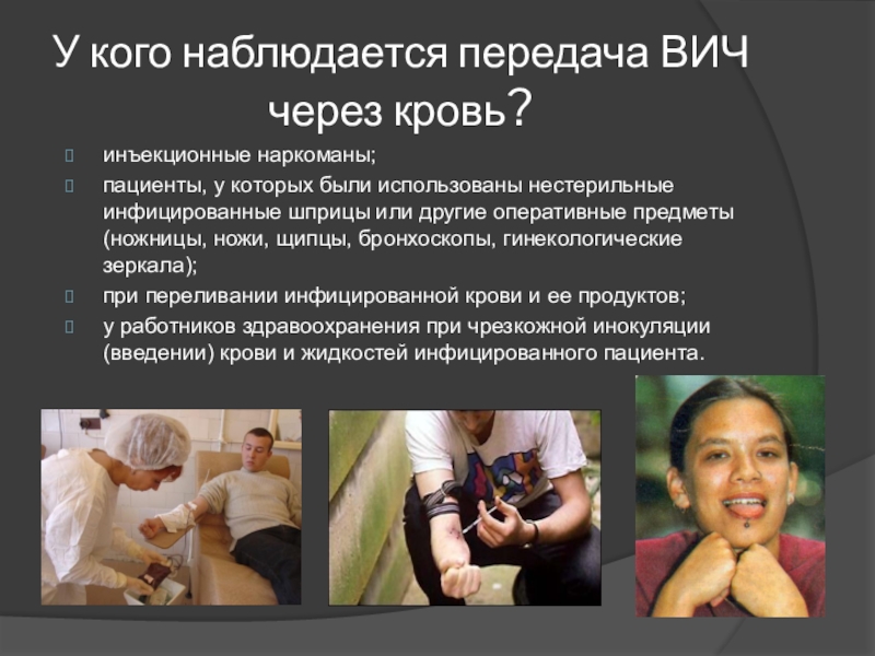 Слайд 6У кого наблюдается передача ВИЧ через кровь?