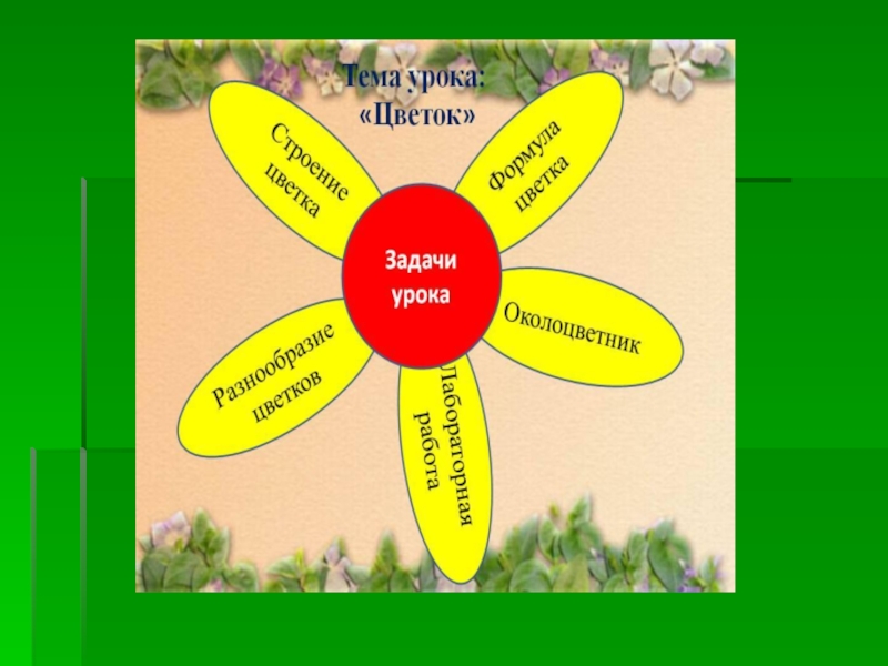Сегодня мы на уроке :Изучим строение цветка и познакомимся с многообразием цветов. Посмотрим связь строения цветка с