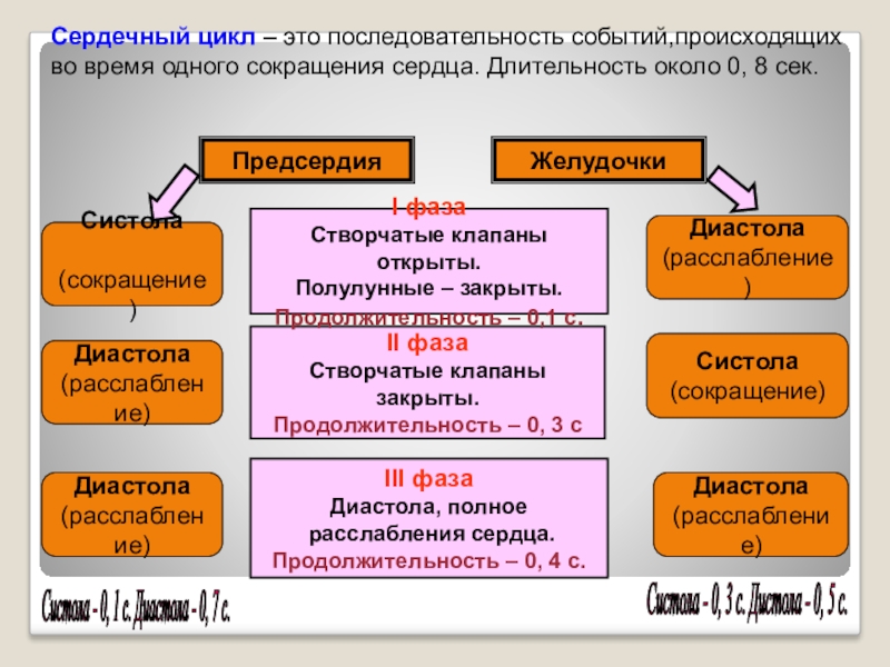 Систола - 0, 1 с. Диастола - 0, 7 с.
