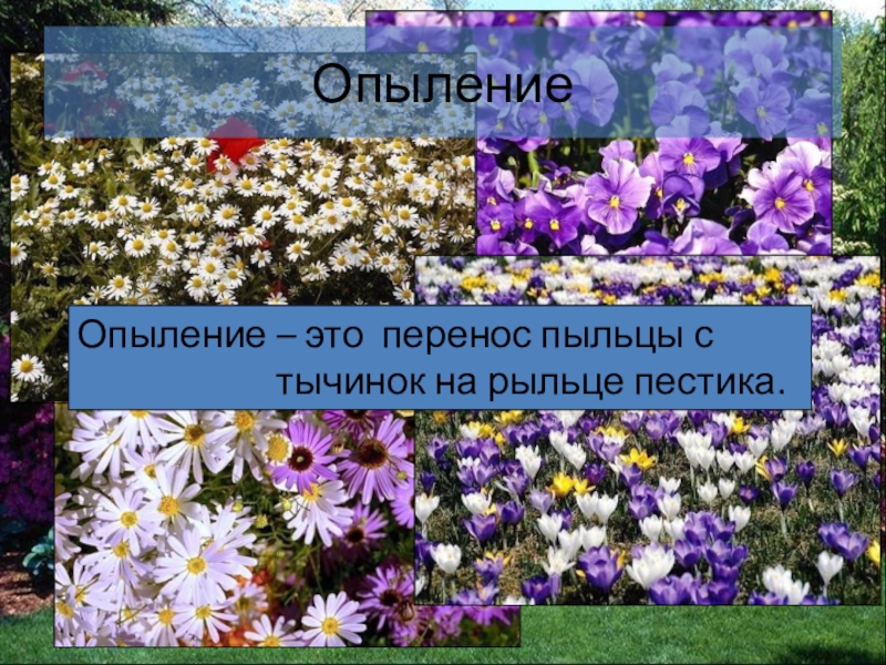 Опыление – это перенос пыльцы с тычинок на рыльце пестика.Опыление