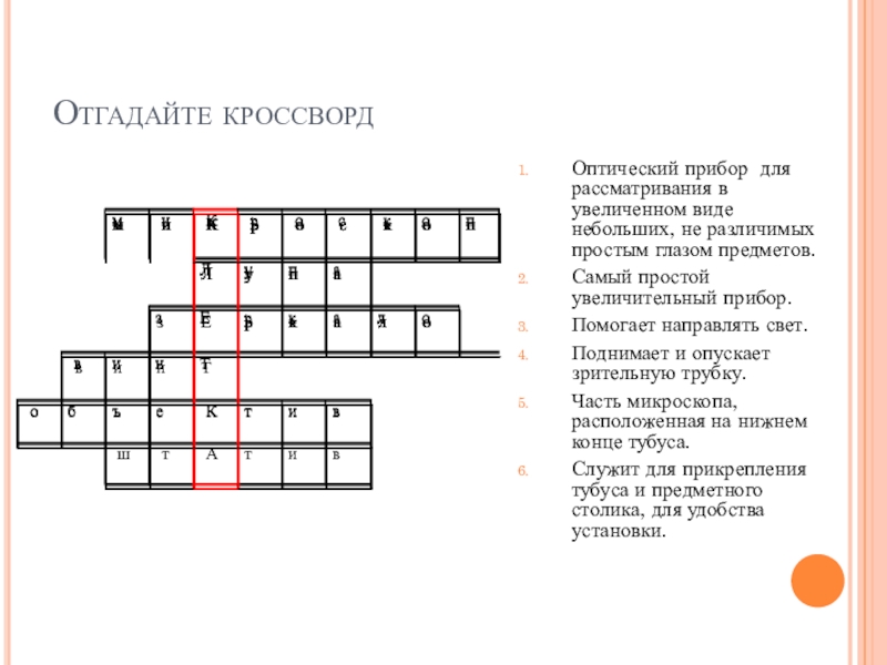 Часть микроскопа, расположенная на нижнем конце тубуса.