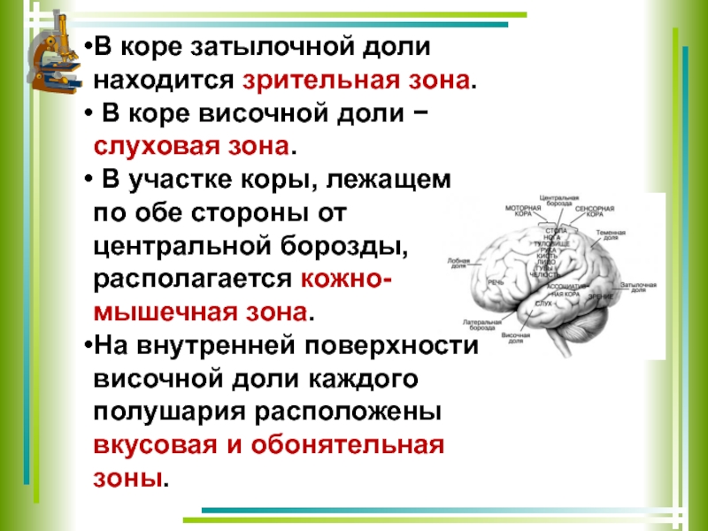 Слайд 12В коре затылочной доли находится зрительная зона.