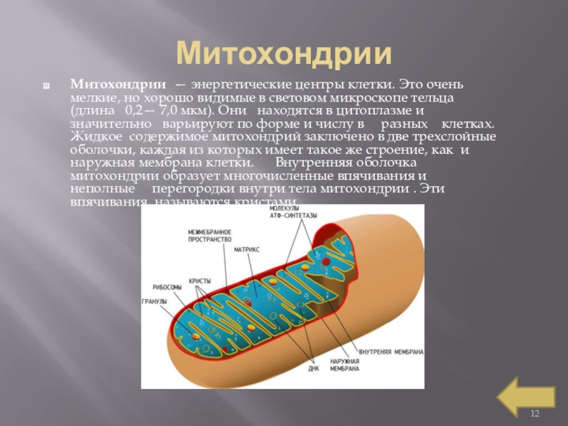 Слайд 12Митохондрии