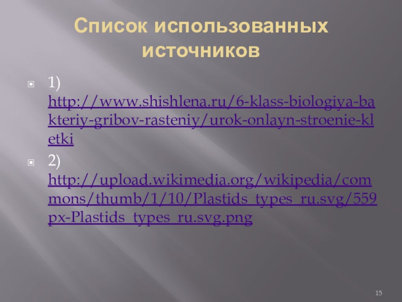 1) http://www.shishlena.ru/6-klass-biologiya-bakteriy-gribov-rasteniy/urok-onlayn-stroenie-kletki