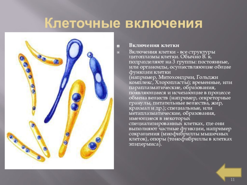 Слайд 11Клеточные включения