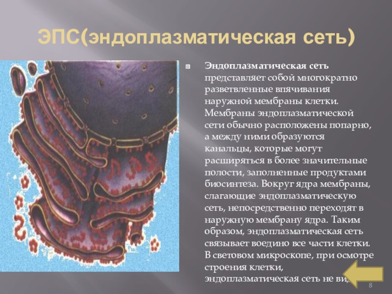 Слайд 8ЭПС(эндоплазматическая сеть)