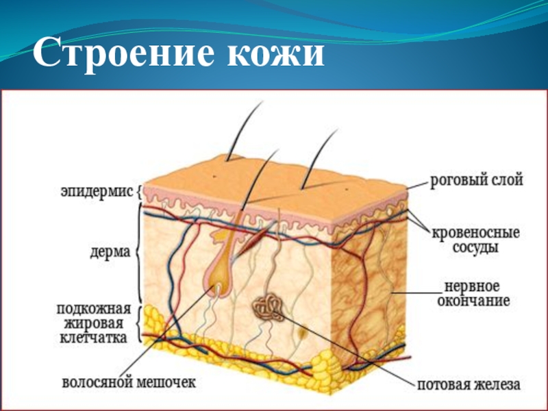 Презентация, доклад по биологии на тему Строение и функции кожи (8 класс)