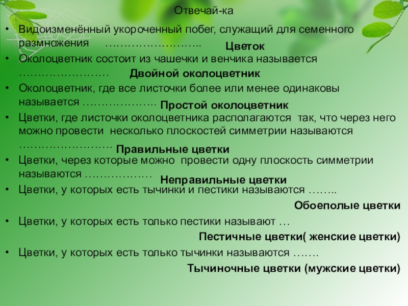 СТРОЕНИЕ ЦВЕТКА