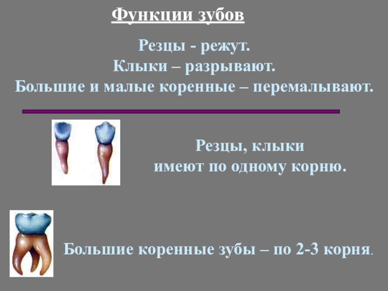 Большие коренные зубы – по 2-3 корня.
