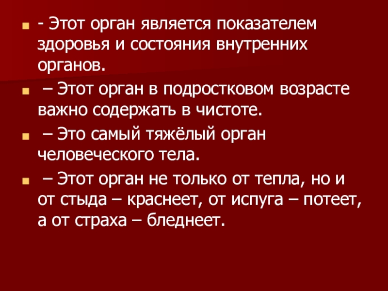 – Этот орган не только от тепла, но и от стыда – краснеет, от испуга – потеет, а от страха – бледнеет.