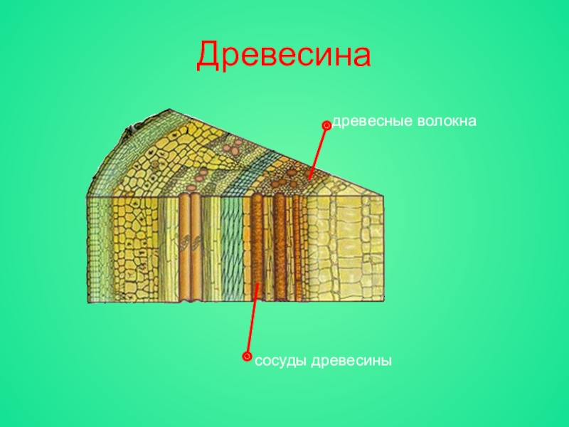 5) По сосудам древесины передвигаются вода и минеральные вещества